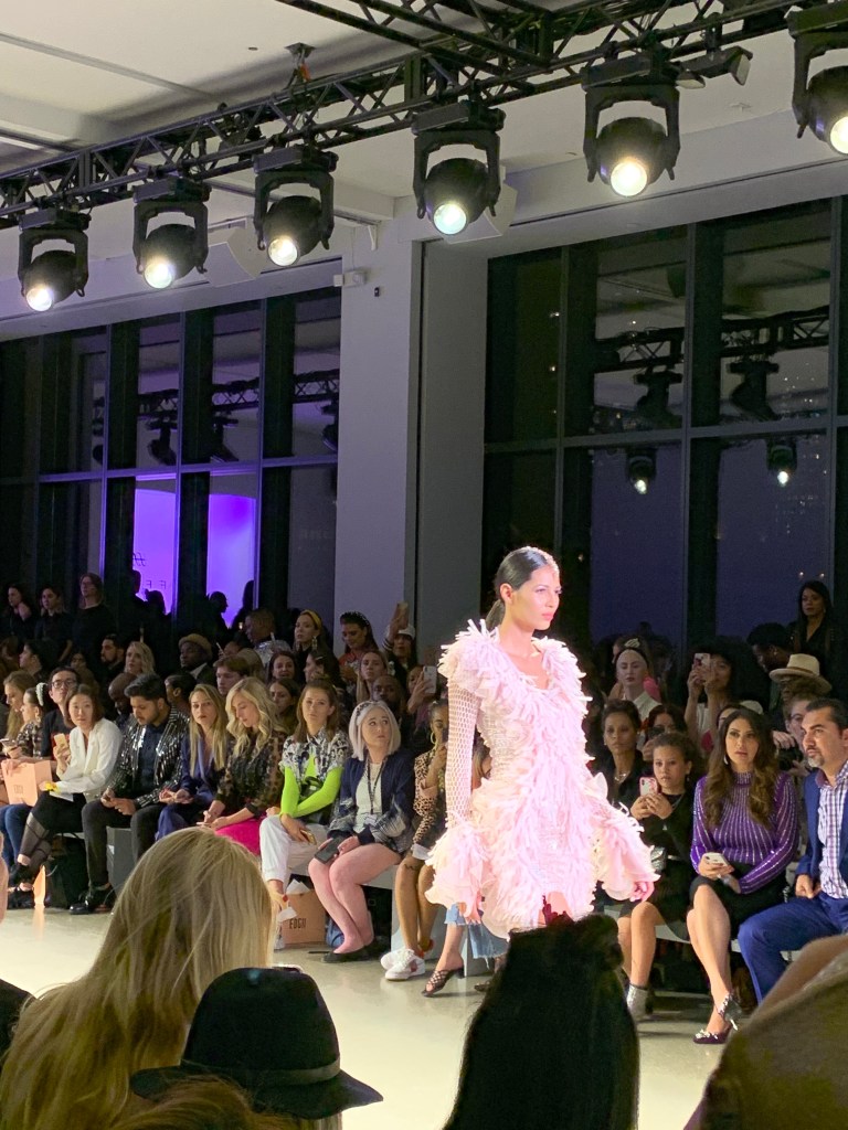 The first show I attended for the Spring/Summer 2020 collection was Affairs. They are a couture brand and the show consisted of gowns and cocktail dresses. I loved the colors used and designs using ruffles, feathers, off the shoulder and accessories! The lighting also was an amazing touch to the collection because of the vivid colors and gowns.