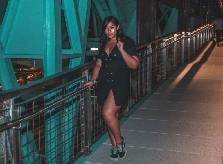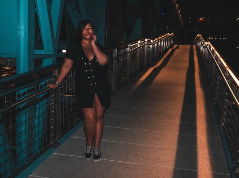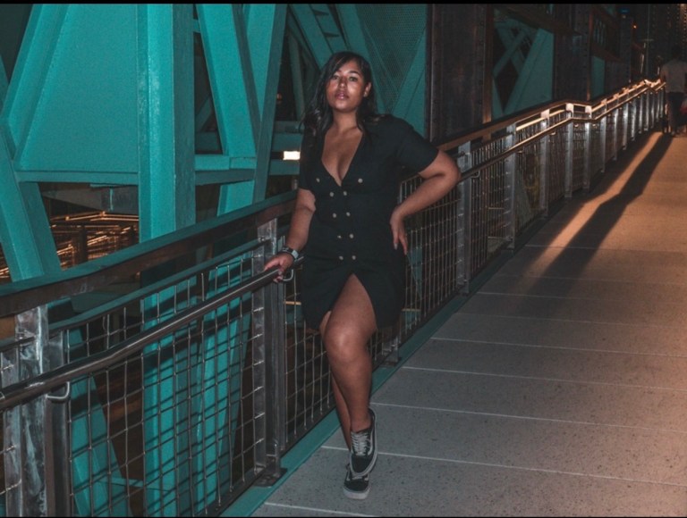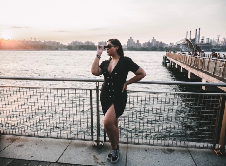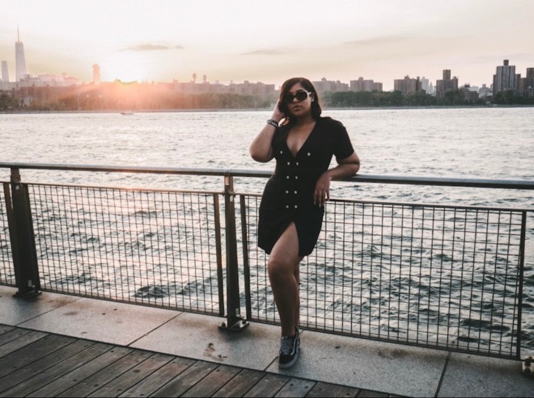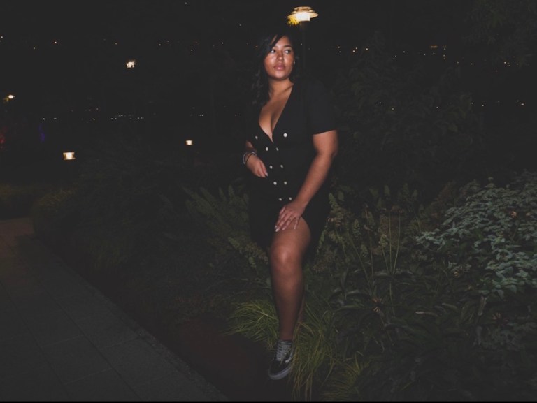 The photo shoot location was at domino park in Williamsburg, Brooklyn. We took pictures at ground level and higher up on a high line walk they have! Domino park is an amazing place for a photo shoot since they have picture perfect scenery. It’s right below the Williamsburg bridge and by the water. We took pictures by the water, and in the bushes.